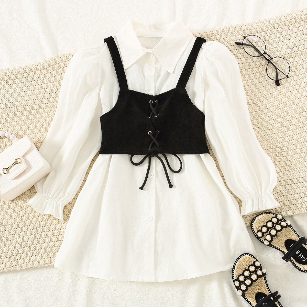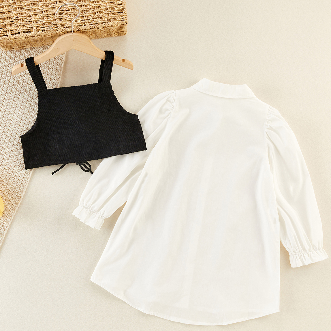Kids Girls Solid Drawstring Vest & Flounce Sleeve Blouse Wholesale