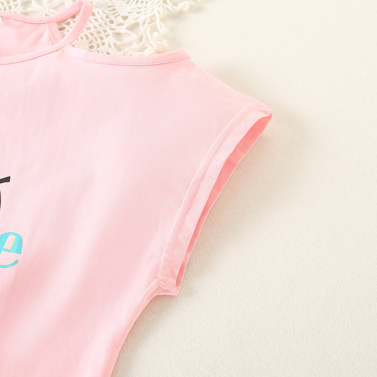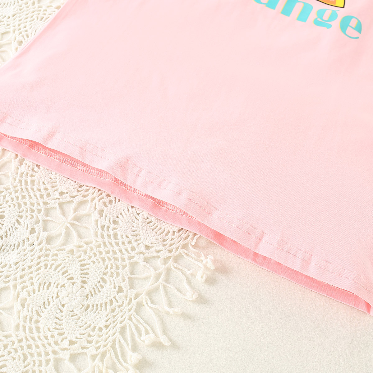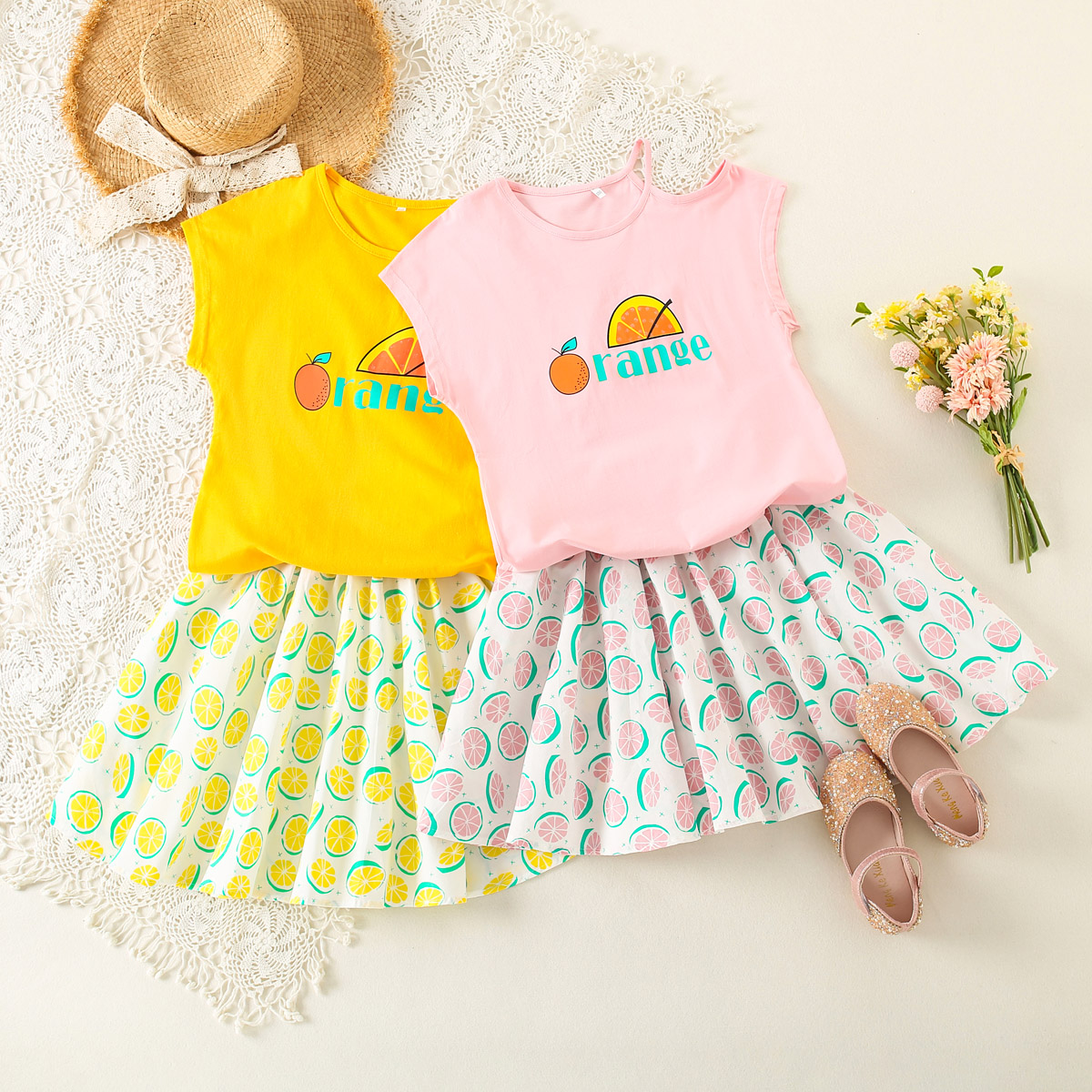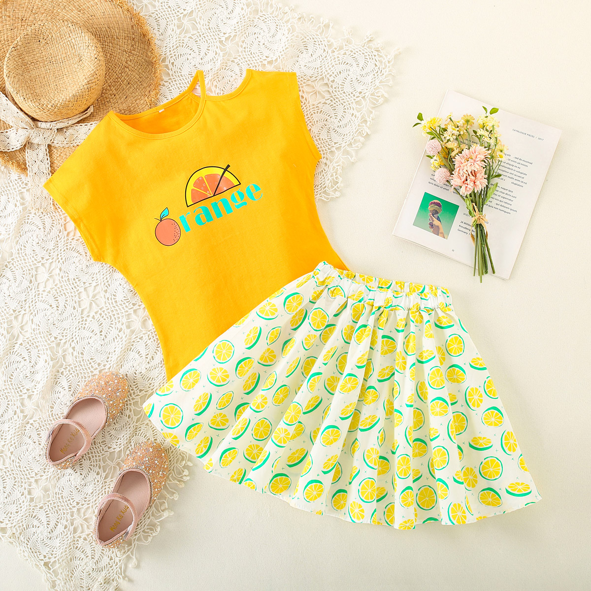 Kids Girls Summer Vacation Daily Letter Orange Print Suit Skirt Wholesale