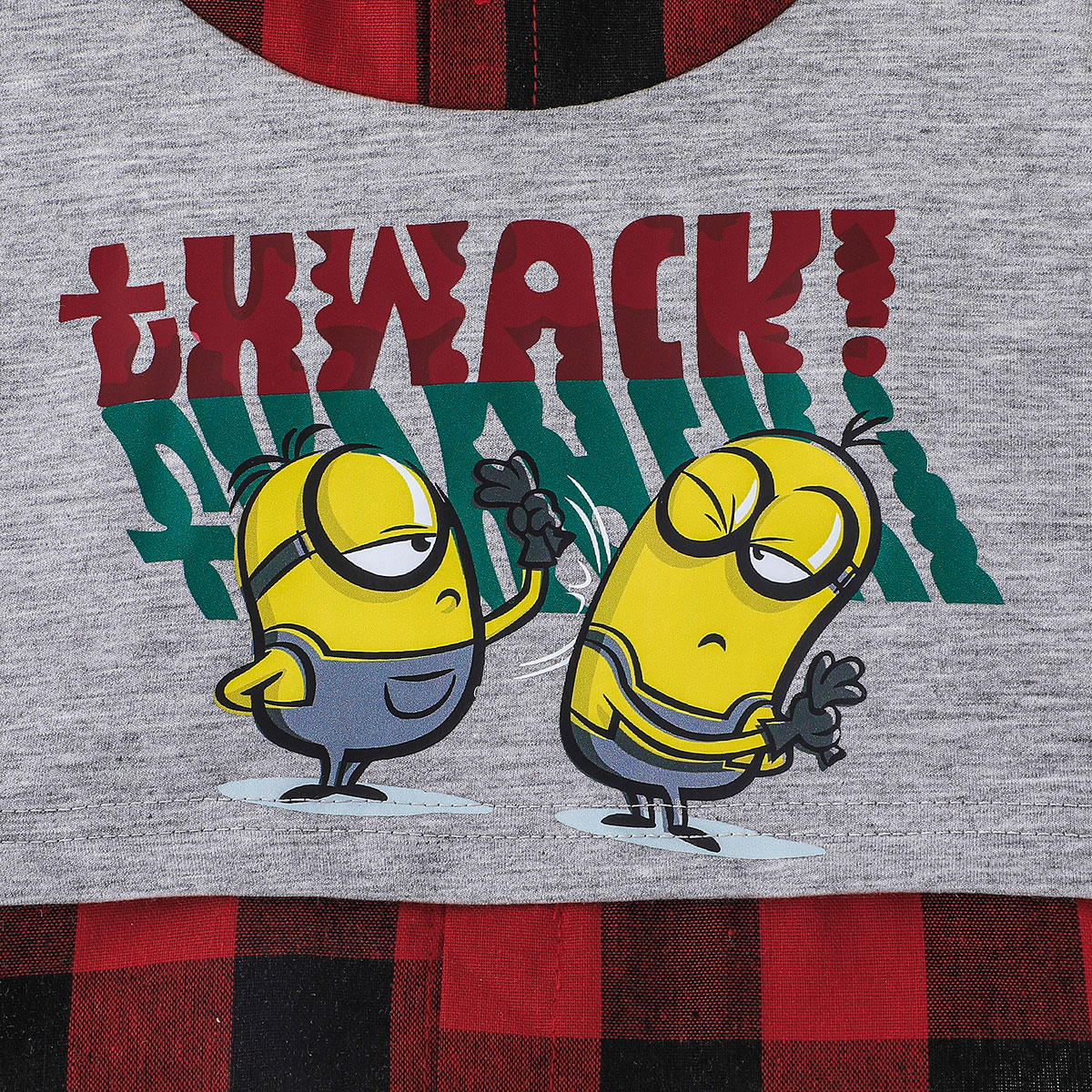 Minions ×toddler boy Printed Fake Two Piece Short Sleeve Grey Trousers Set Wholesale