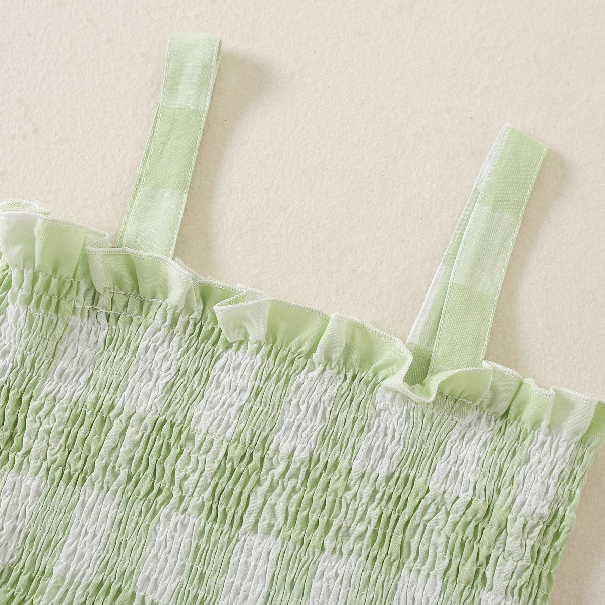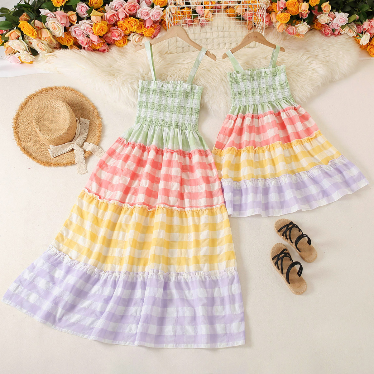 Sweet Plaid Print Sleeveless Long Dress for Mom and Me Wholesale