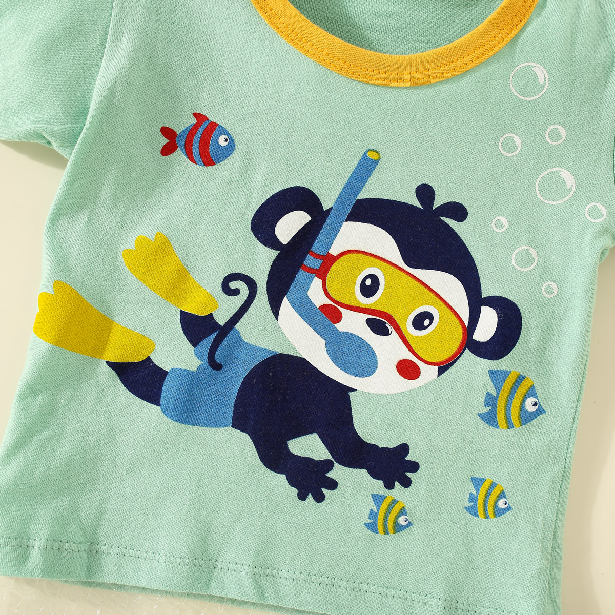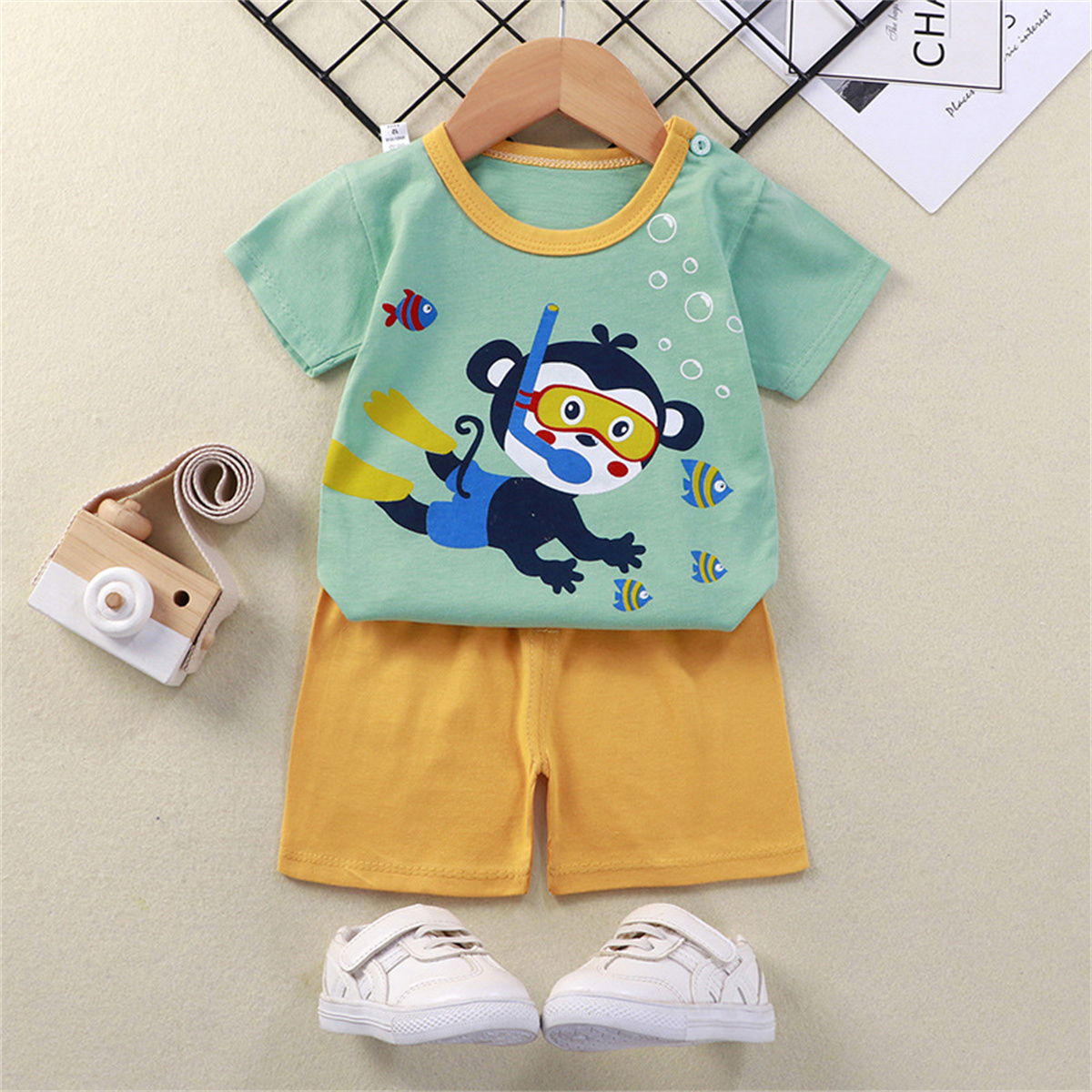 Toddler Boys Cute Stripes Dinosaur Monkey Pajamas Sets Top & Shorts Wholesale