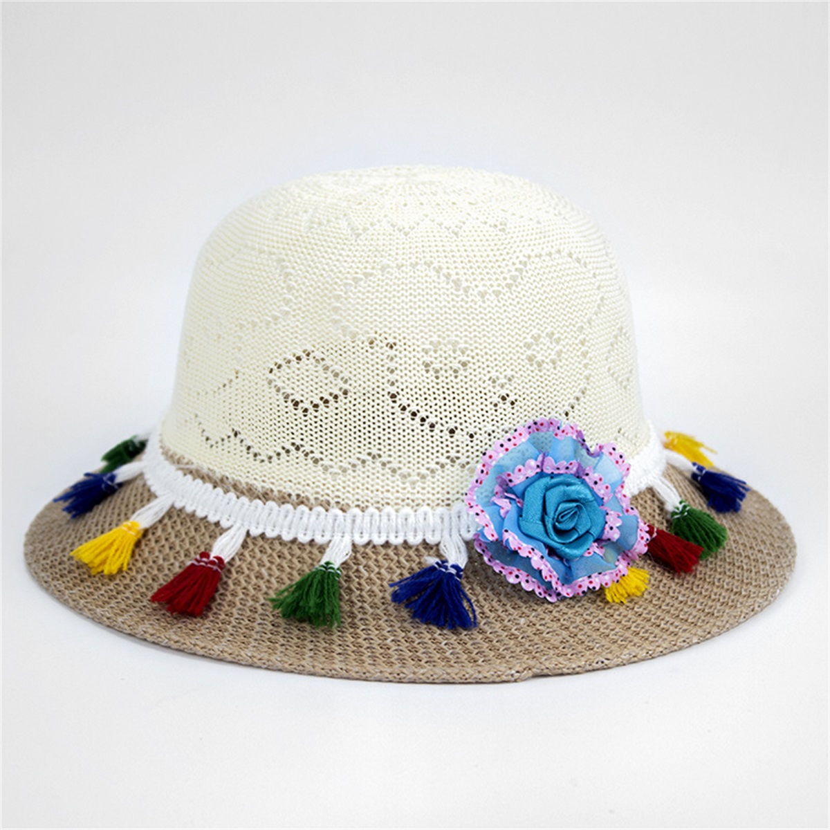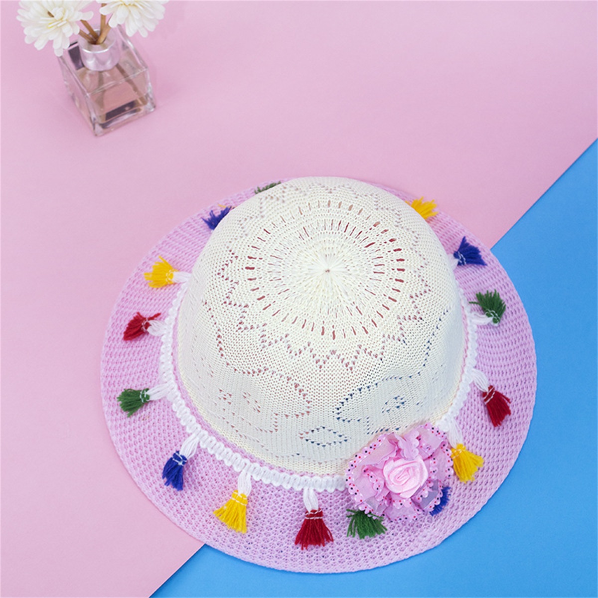 Toddler Colored Flowers Straw Hat Wholesale