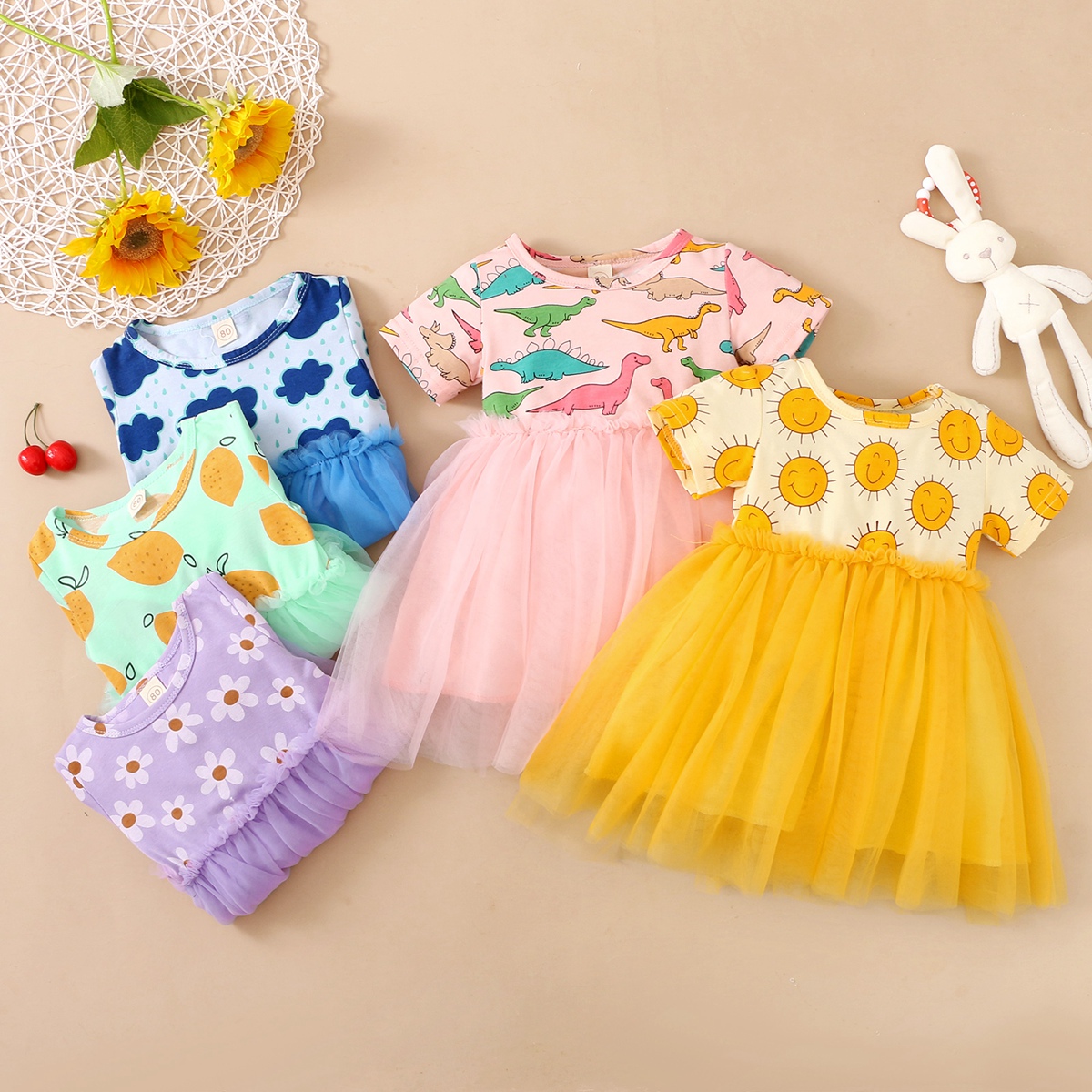 Toddler Girl Cute Tulle Press Cartoon Dress Wholesale