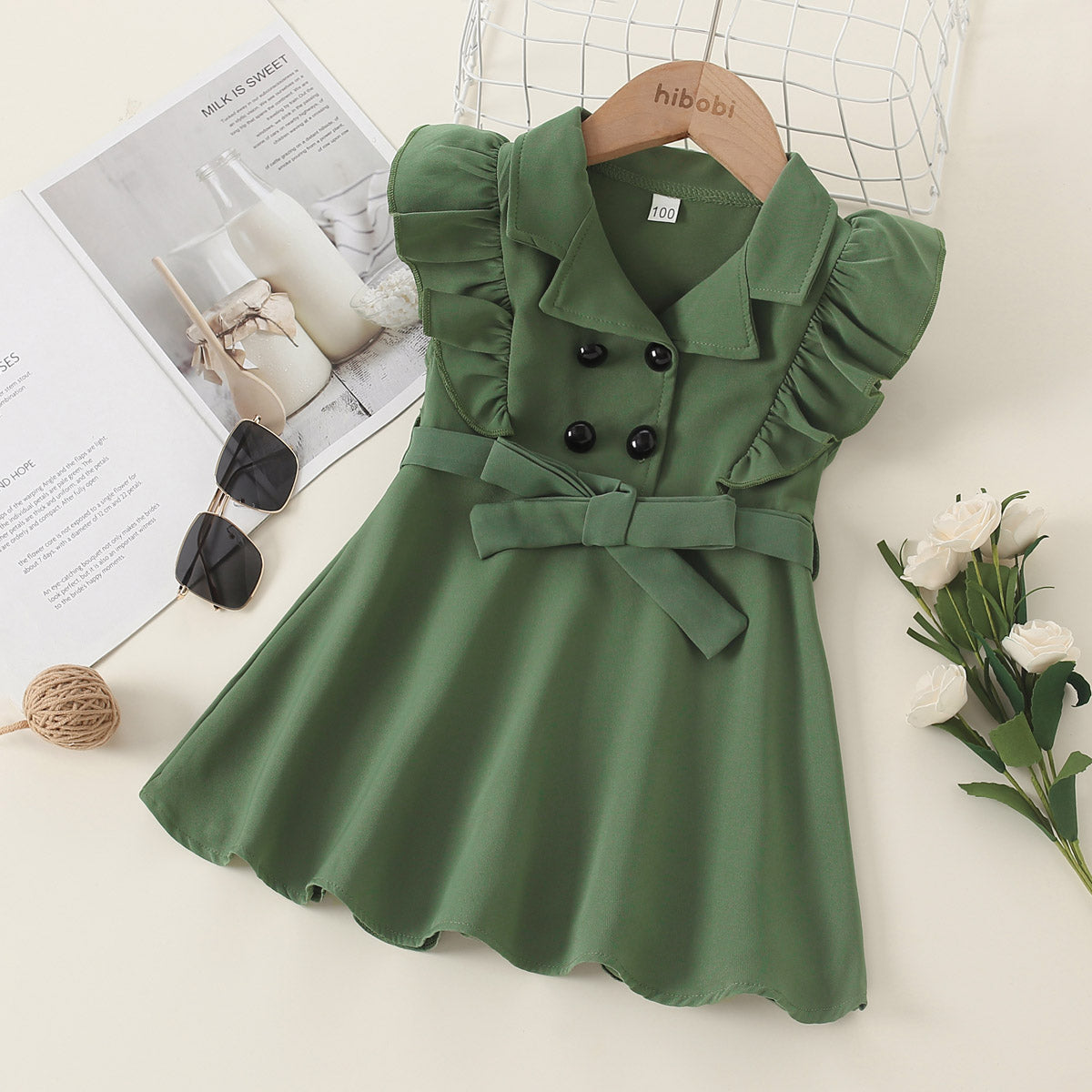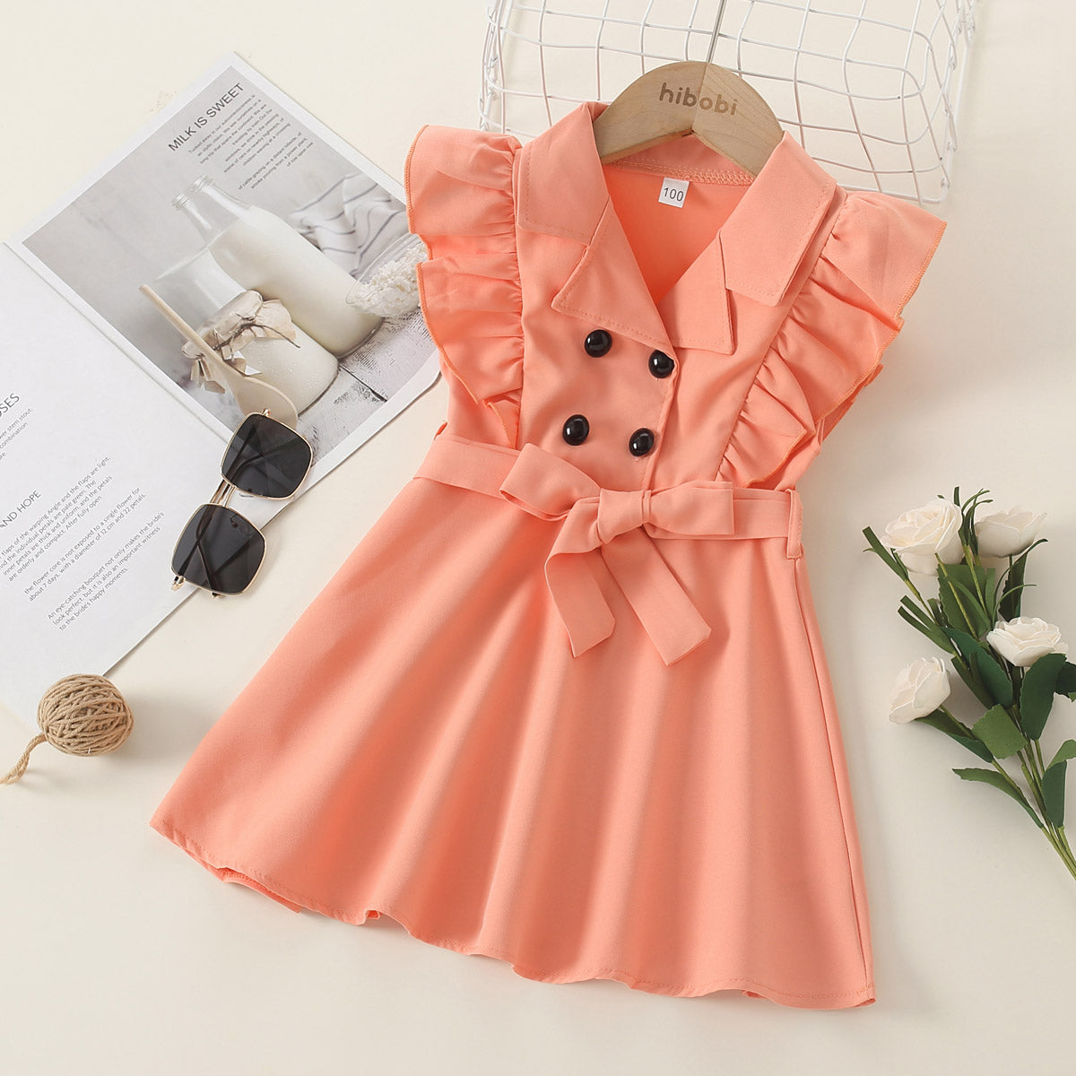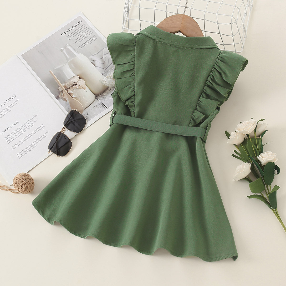 Toddler Girl Eleguard Plain Ruffle Solid Color Dress Wholesale