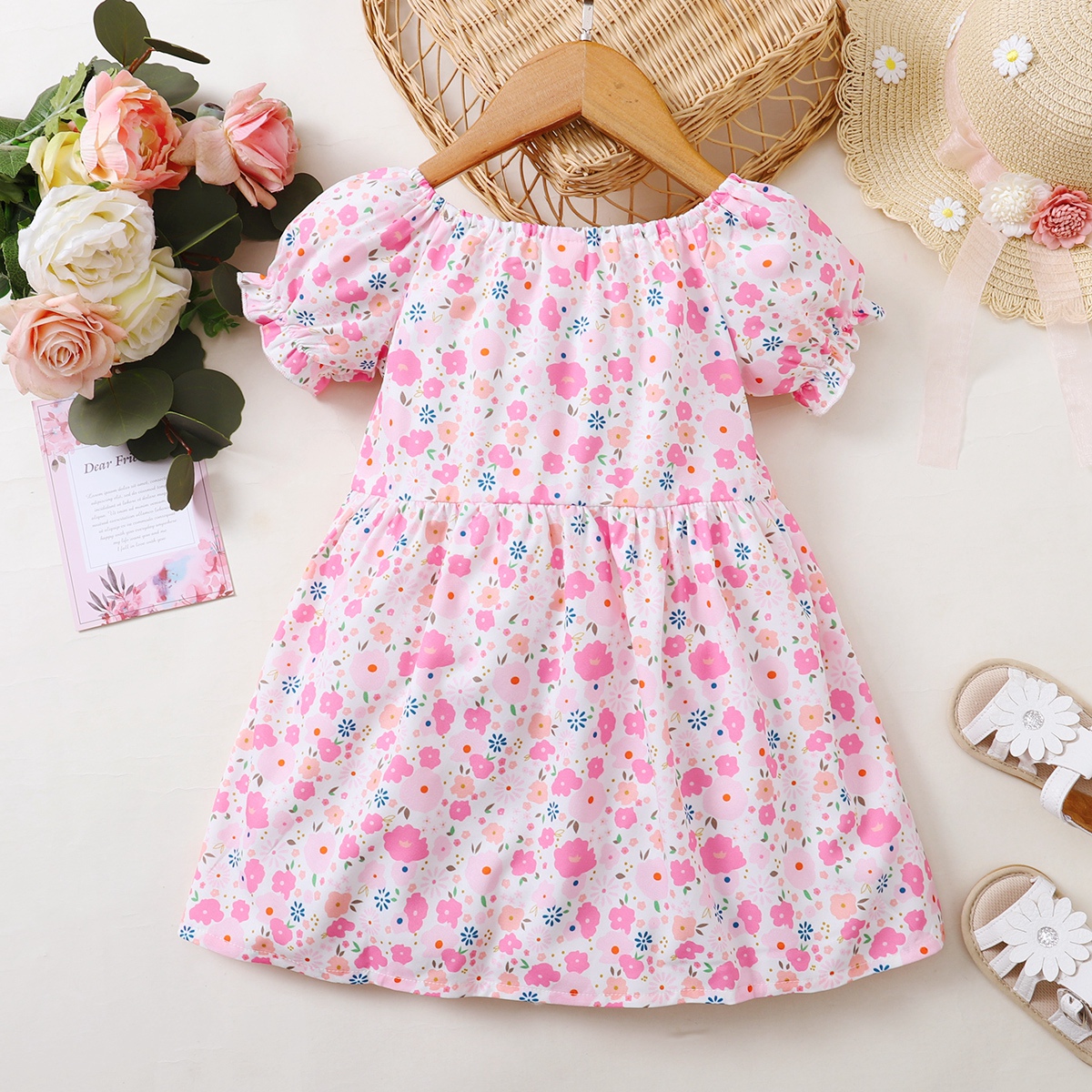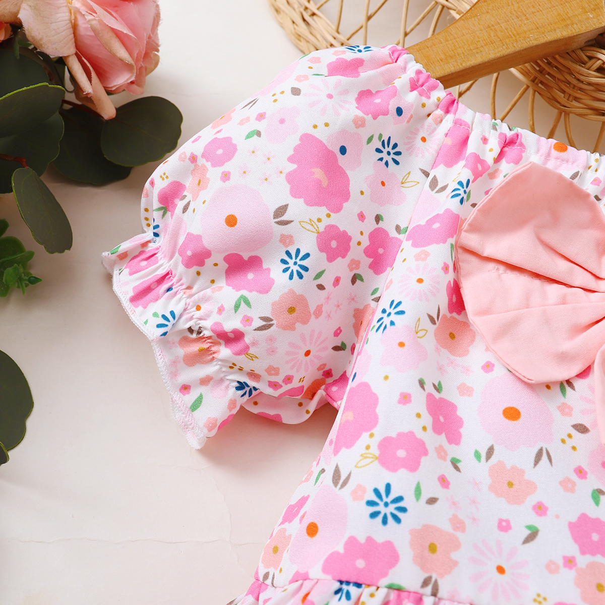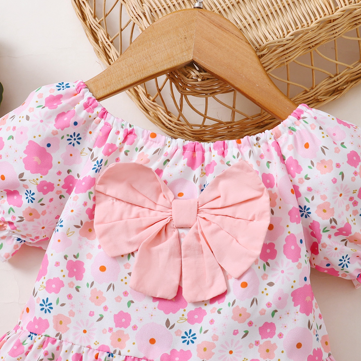 Toddler Girl Sweet Floral Bow Knot Decor Dress Wholesale