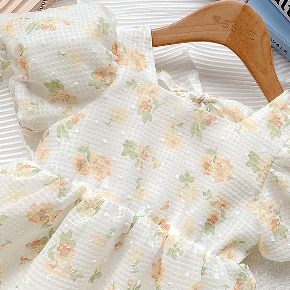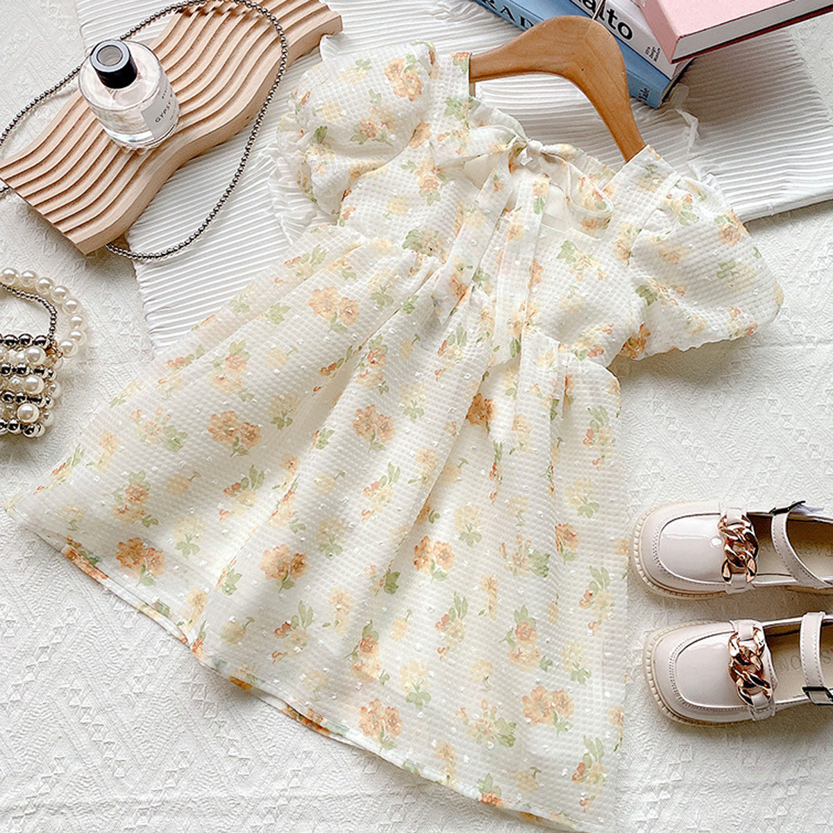 Toddler Girls Cotton Floral Square Neck Princess Skirt Dress Wholesale