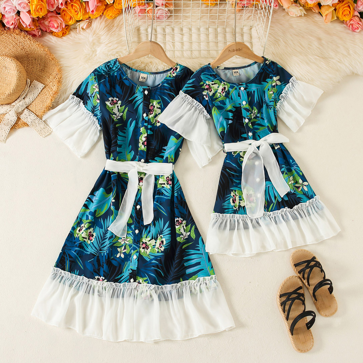 Elegant Floral Print Long Dress for Mom and Me Wholesale